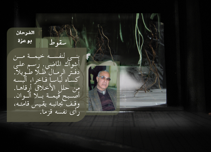 ![]() أعذرني أيها القدير الأستاذ الفرحان بو عزّة فلا زلت التمس خيوط الفجر الموعود لعل وهج الشمس يحرق بعض الأوراق الذابلة المتشبّثة بالغصن رغم رحيل نضارتها وحتّى عصرها إنّها من بقايا التاريخ، لكنها تأبى إلا الظهور بمظهر الفتيات المراهقات، ومع أن ثمار أمها الشجرة مرّة إلا أن الفلاحين يدّعون أنّها في حلاوة العسل لا ادري لماذا؟ |